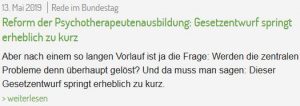 So wird Timo Harfst von der Bundespsychotherapeutenkammer (BPtK), die im G-BA Anhörungsrecht hat, im Deutschen Ärzteblatt vom 16.06.16 zitiert.