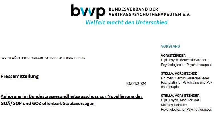 - Gemeinsame Pressemitteilung von DPtV, bvvp und VAKJP