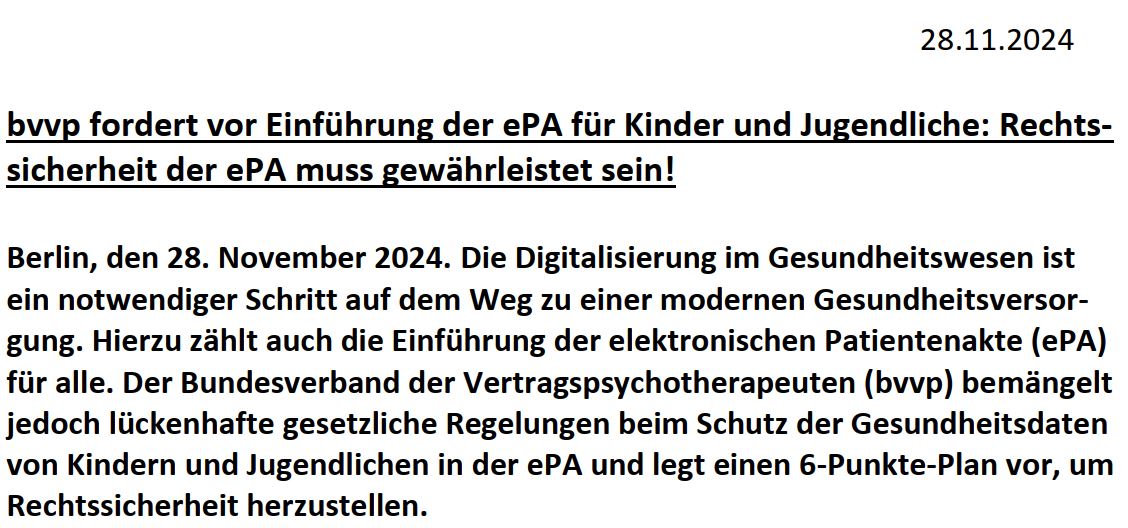 BVVP setzt sich für ePA-Opt-In für KiJu ein