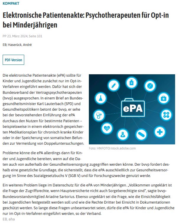 BVVP setzt sich für ePA-Opt-In für KiJu ein