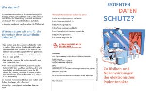 Klick auf Bild: Link zum Bündnis für Datenschutz und Schweigepflicht mit komplettem Flyer auch in grün und in anderen Sprachen sowie Bestellmöglichkeit zum Druck (am besten mit anderen Praxen zusammen legen für größere Anzahl)