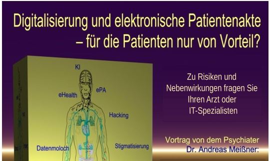 Wunschdenken und Realität werden von Dr. med. Andreas Meißner, Psychiater und Psychotherapeut, kritisch betrachtet. Zu diesen Themen hat er wiederholt publiziert und 2020 eine Petition vor dem Petitionsausschuss des Bundestages vertreten. Es geht dabei nicht nur um die ePA, sondern auch um die zentrale Datenspeicherung und den europäischen Gesundheitsdatenraum.