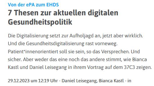 6. wenn Patient:innen nicht glauben können, dass der Datenschutz bei ePA nicht so wichtig genommen wird, könnt Ihr auf Min 17 in diesem Video verweisen: