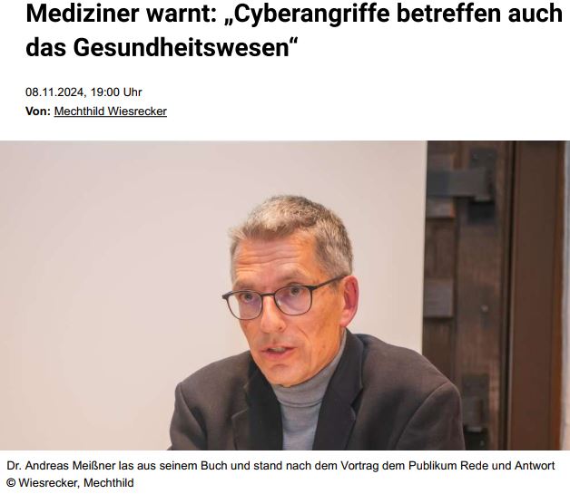 Herr Dr. Meißner hat 2020 gemeinsam mit dem BfDS (Bündnis für Datenschutz und Schweigepflicht) die mit 65 000 Unterstützern erfolgreiche Bundestags-Petition gegen den Zwang zum Anschluss an die Telematik-Infrastruktur auf den Weg gebracht und in der Anhörung vor dem Petitionsausschuss am 15.6.2020 vertreten. Die damals verfasste Pressemitteilung ist noch heute aktuell, weil die Zwänge stärker werden.