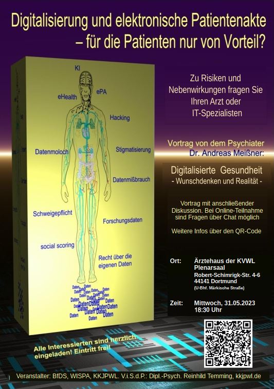 Wunschdenken und Realität werden von Dr. med. Andreas Meißner, Psychiater und Psychotherapeut, kritisch betrachtet. Zu diesen Themen hat er wiederholt publiziert und 2020 eine Petition vor dem Petitionsausschuss des Bundestages vertreten. Es geht dabei nicht nur um die ePA, sondern auch um die zentrale Datenspeicherung und den europäischen Gesundheitsdatenraum.
