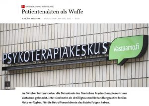 FAZ: Finnland – Hackerangriff auf psychotherapeutische Krankenakten