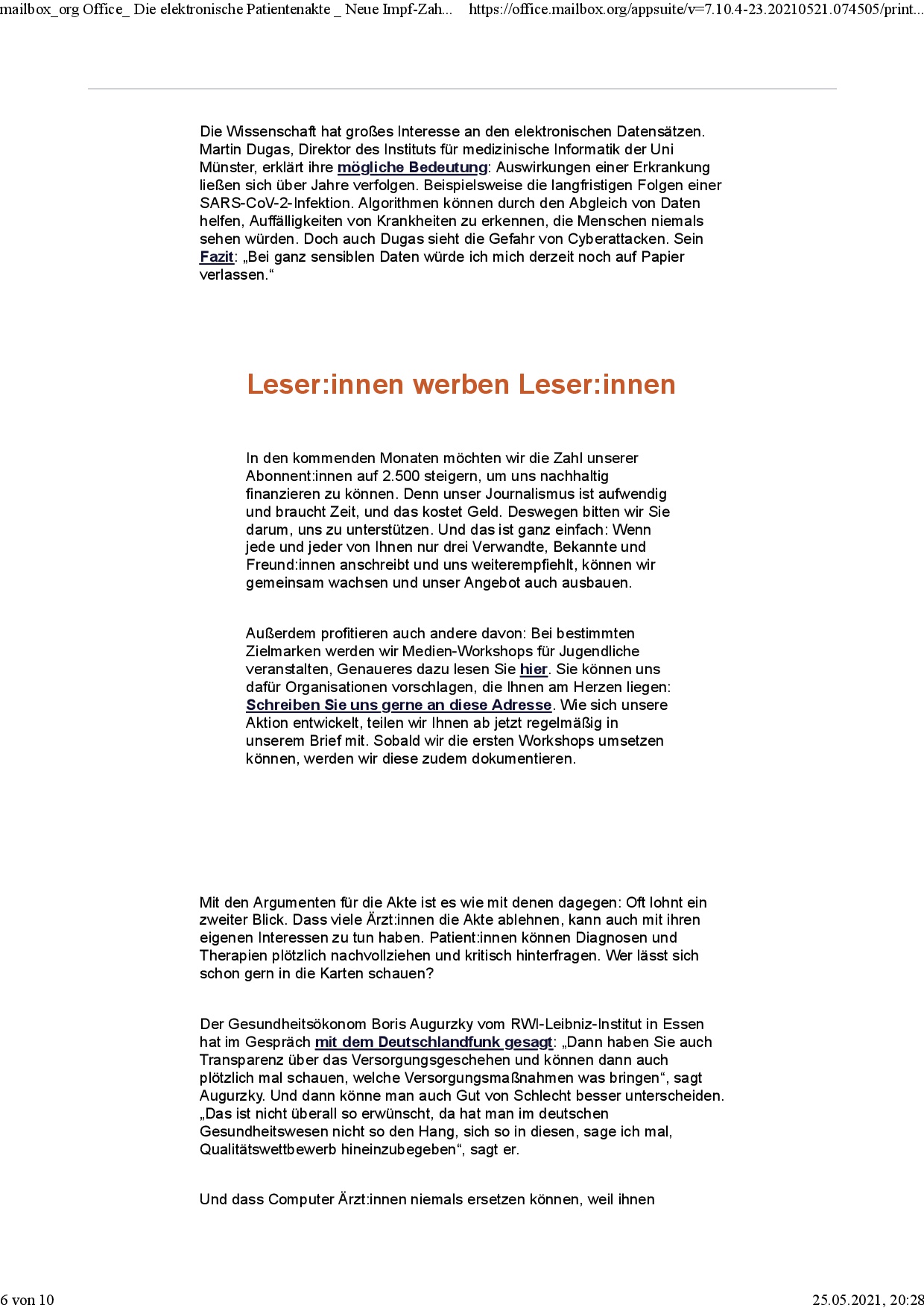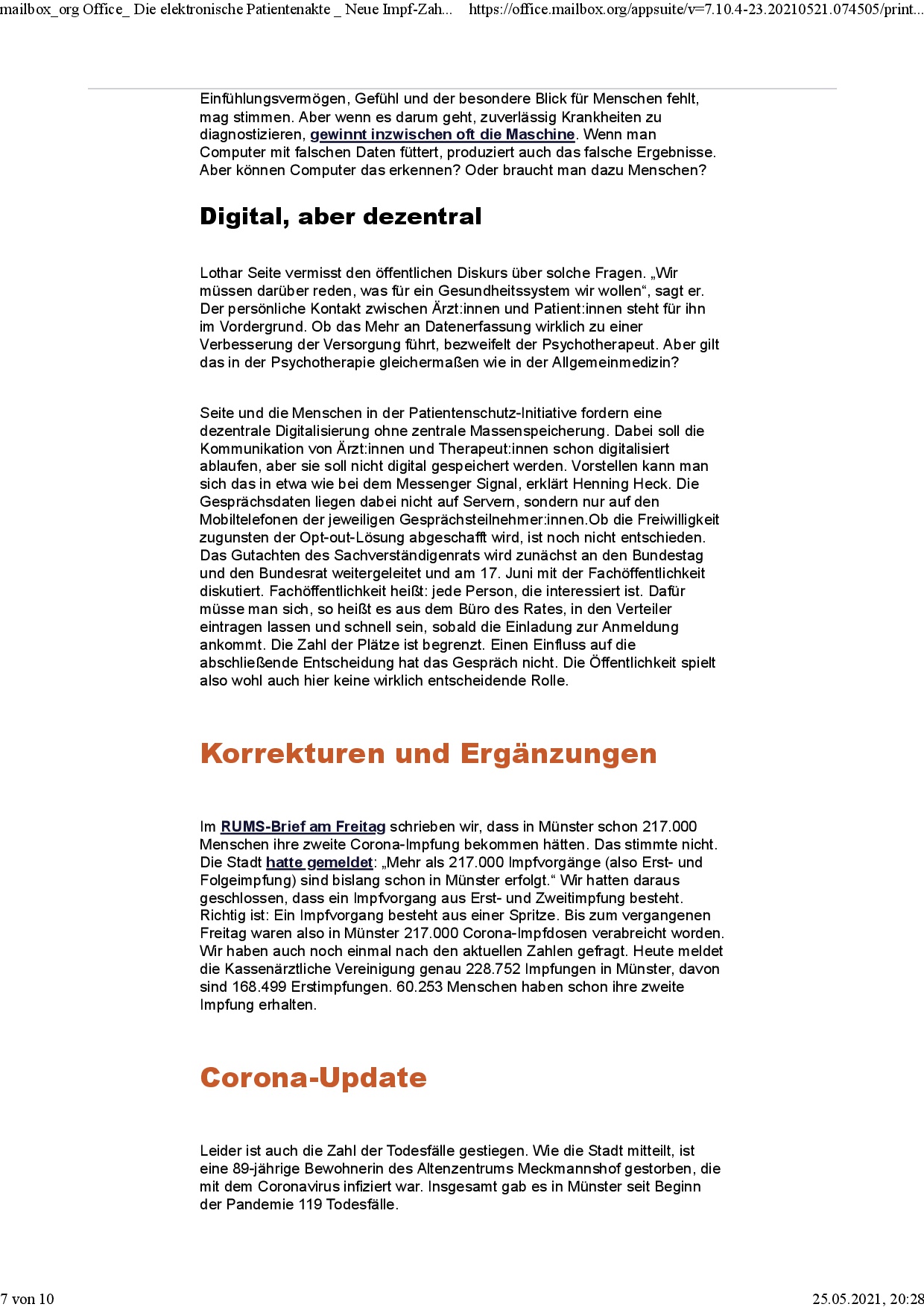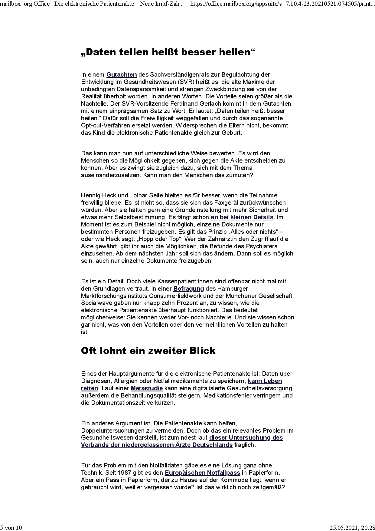 RUMS-Artikel 25.05.2021 aus RUMS Online-Magazin aus Münster: https://www.rums.ms/briefe/hojas-2021-05-25/ Artikel als PDF downloaden (interner Link) zurück zu Gesundheitspolitik / Digitalisierung