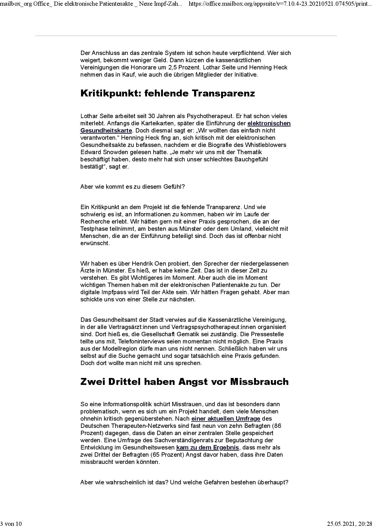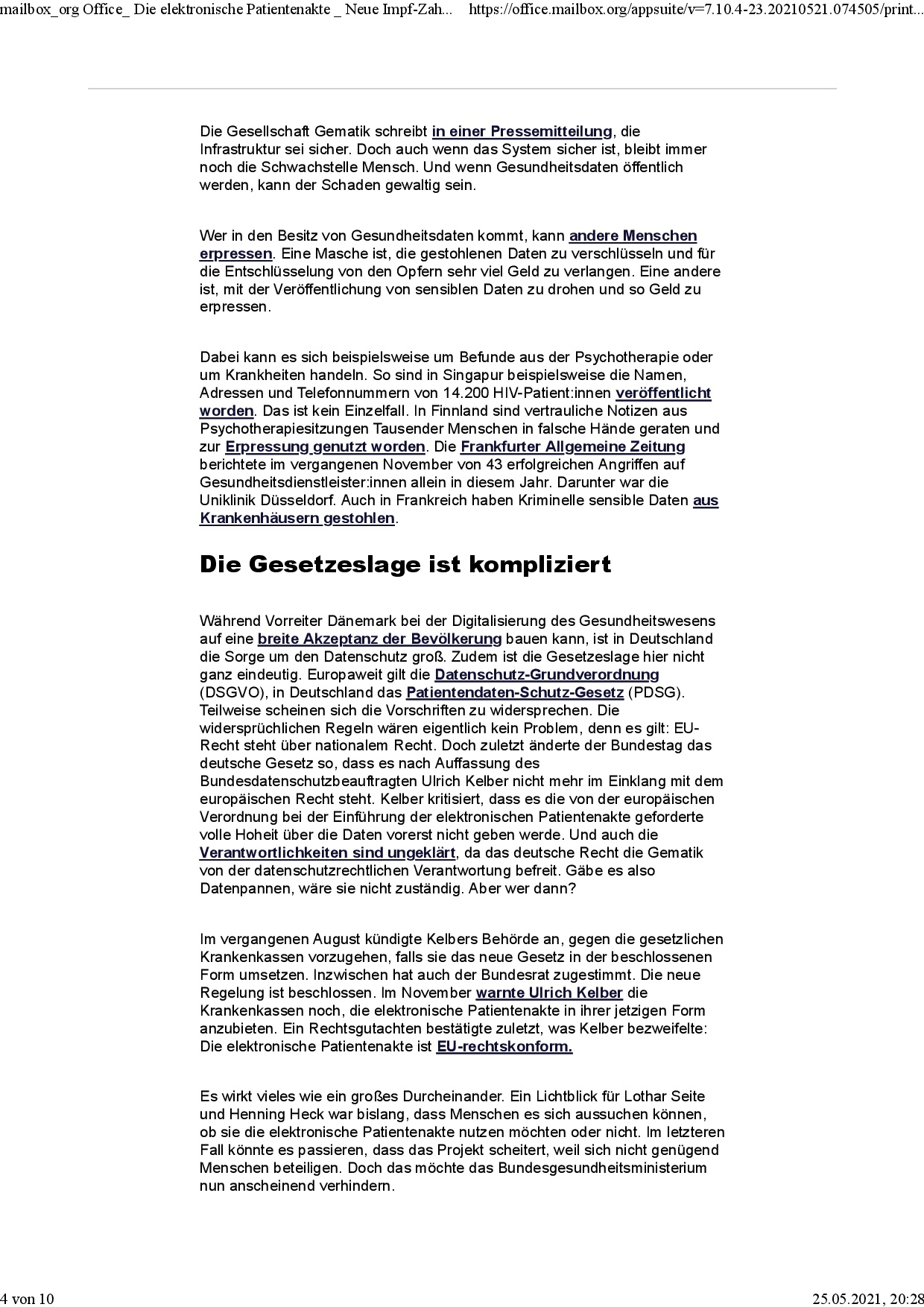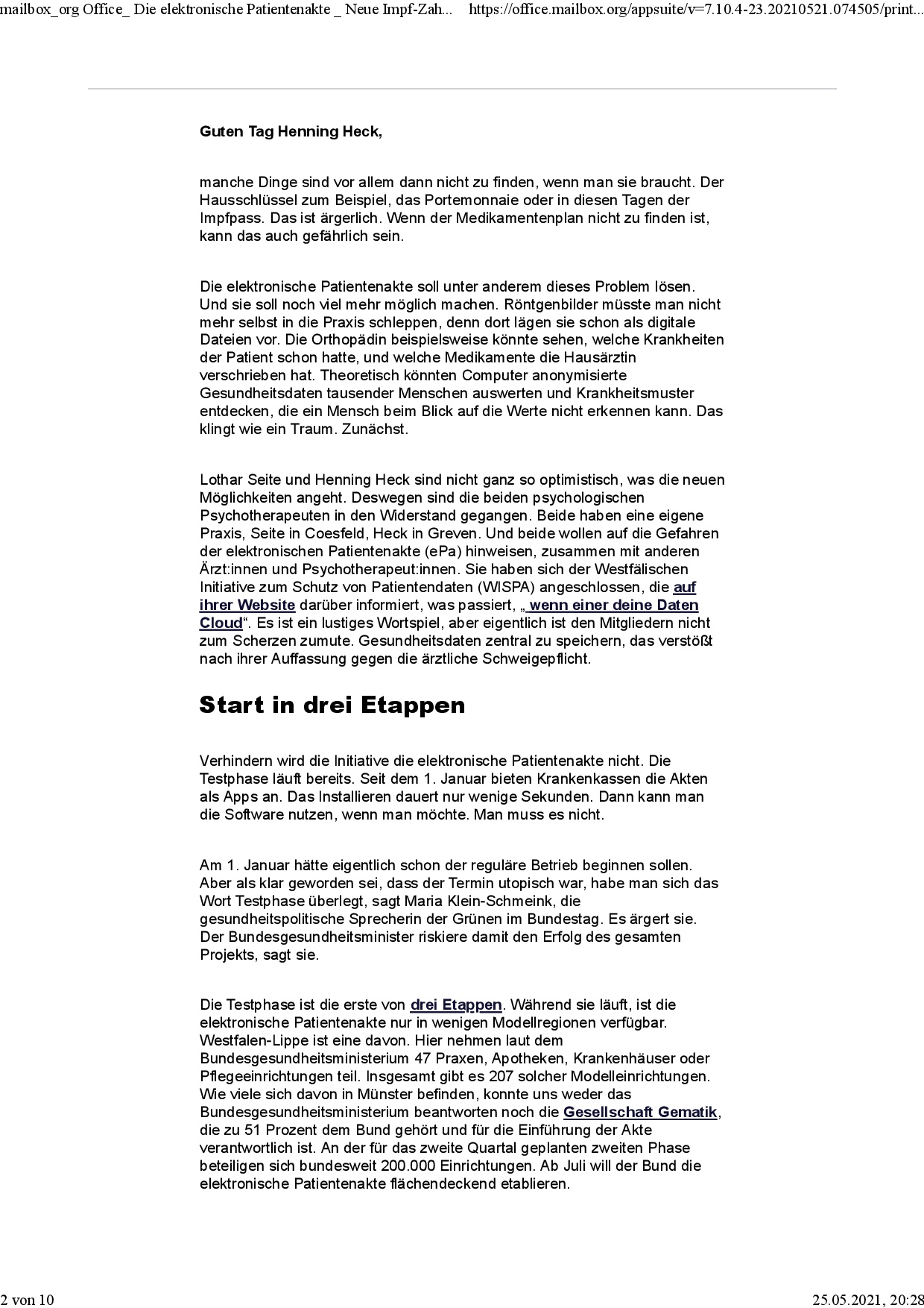 RUMS-Artikel 25.05.2021 aus RUMS Online-Magazin aus Münster: https://www.rums.ms/briefe/hojas-2021-05-25/ Artikel als PDF downloaden (interner Link) zurück zu Gesundheitspolitik / Digitalisierung